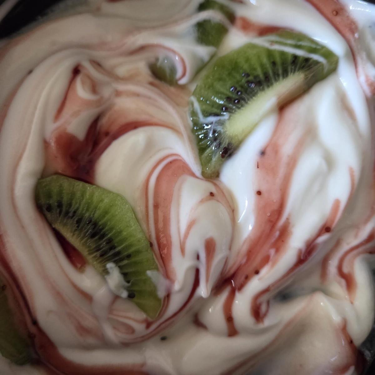 Heute gab's zum Frühstück meinen ersten selbst gemachten Joghurt, verfeinert mit Erdbeersoße und Kiwis...Ich bin begeistert 🤍